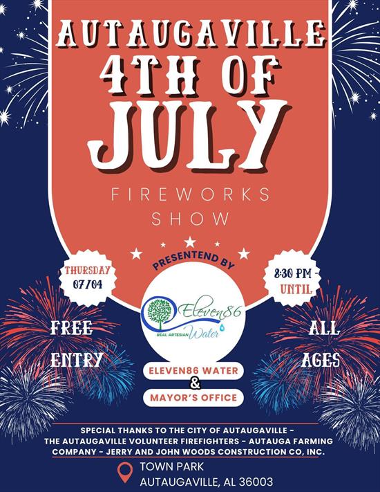 Autuagaville July 4th Fireworks Town Park at 8:30 PM