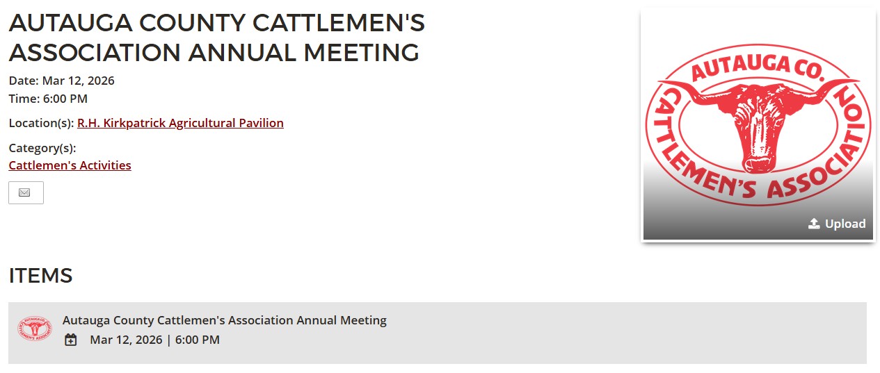 Autuaga County Cattlemaen's Association Annual Meeting 6:00 PM