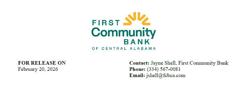 ![]() First Community Bank of Central Alabama Proudly Celebrates Grand Opening in Pine Level ![]() Pine Level, Autauga County, AL – First Community Bank is open for business at 710 Commercial Parkway in the Interstate Business Park. The branch had a soft opening Monday, February 2, 2026. The official grand opening and ribbon cutting celebration today marks an important milestone for the bank with historical significance as the first financial institution and the first ribbon cutting in the Town of Pine Level. The new location offers a full range of deposit and loan products for consumers and businesses as well as a mortgage office and wealth management suite. Customers have access to in-branch and drive-thru teller service as well as a 24-hour, deposit capable ATM. The First Community Pine Level team is fully staffed with local banking professionals. First Community Bank President & CEO, Rana Futral, says, “We are proud to be the first bank in the Town of Pine Level and the first business to celebrate a ribbon cutting in the Town of Pine Level. First Community Bank is local from our board members to our employees, and we are here for all of your financial needs. I believe there is tremendous opportunity in the Pine Level community, and it will be a catalyst for continued growth in the surrounding areas.” First Community Bank is thrilled to be part of this thriving community and proud to now serve our customers even better with the addition of our Pine Level office. We invite you to stop in and meet the team. Let’s Do Life Together! ![]() ![]() ![]() For more information about our new Pine Level location, please call our local office at (334) 852-2265. First Community Bank is a full-service community bank serving Elmore and Autauga |