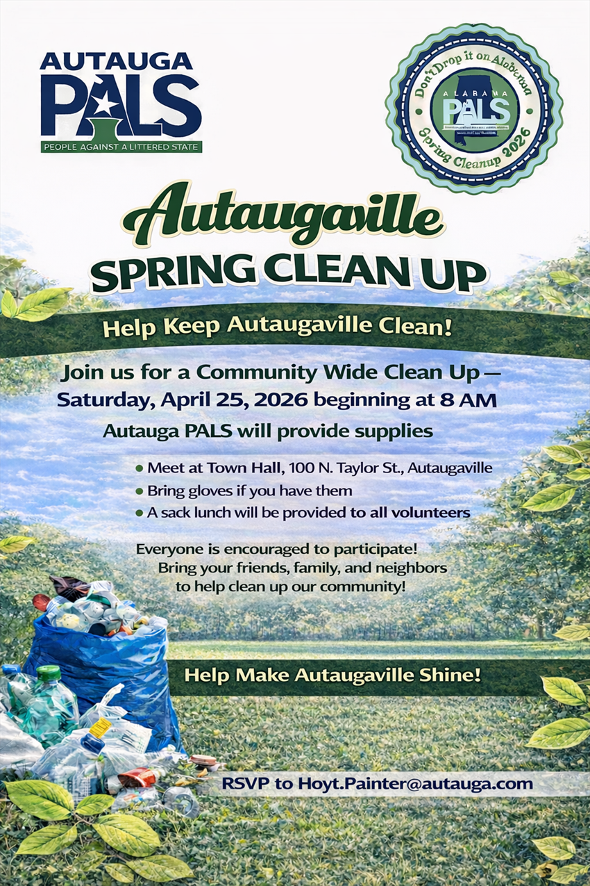 8 AM- 11 AM Autaugaville Spring Clean Up Event with Autuaga PALS