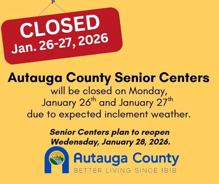 | Autauga County Senior Services Centers Closed Jan. 26-27, 2026 |